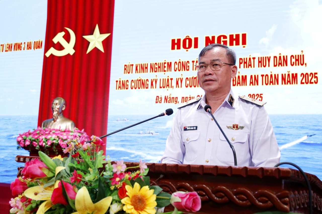 HQ Online - Sáng 24/12, tại TP. Đà Nẵng, Bộ Tư lệnh Vùng 3 Hải quân tổ chức Hội nghị rút kinh nghiệm công tác tư tưởng, phát huy dân chủ, tăng cường kỷ luật, kỷ cương và bảo đảm an toàn. Chuẩn Đô đốc Nguyễn Đăng Tiến, Bí thư Đảng ủy, Chính ủy Vùng chủ trì hội nghị.