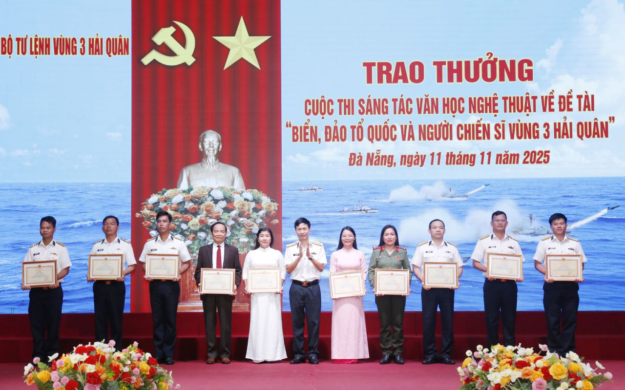 Thủ trưởng Vùng 3 trao thưởng tác giả, nhóm tác giả có thành tích tốt trong các cuộc thi tìm hiểu 50 năm truyền thống Vùng 3 Hải quân