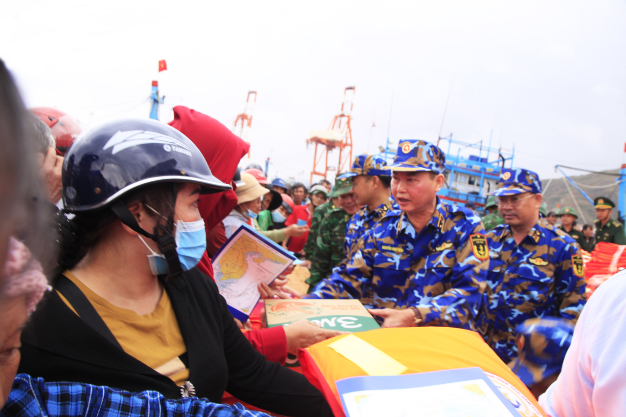 Cùng với sự hỗ trợ của các doanh nghiệp, đoàn thể, Vùng 4 đã trao tặng bà con ngư dân 2 tấn gạo, 300 thùng mì tôm, 100 thùng sữa, 200 lá cờ Tổ quốc, 100 phao tròn, 300 áo phao, 2 tivi; tặng 10 chiếc xe đạp cho các cháu học sinh là con ngư dân có hoàn cảnh khó khăn vươn lên trong học tập.