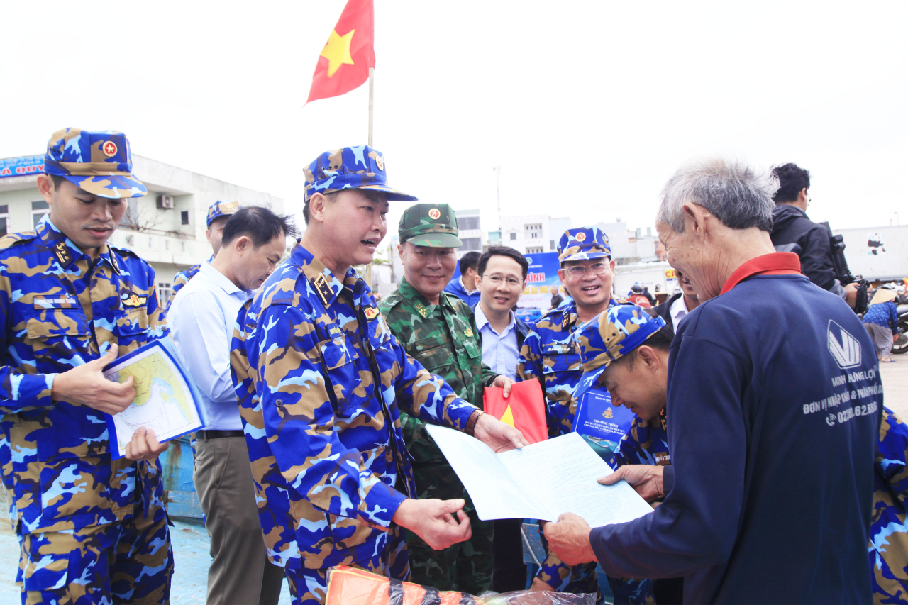 Dịp này đoàn công tác Vùng 4 cũng tặng ngư dân 200 tờ rơi tuyên truyền về Luật Biển Việt Nam, Chỉ thị 45 của Thủ tướng Chính phủ về một số nhiệm vụ, giải pháp cấp bách để khắc phục cảnh báo của Uỷ ban châu Âu về khai thác hải sản bất hợp pháp, không báo cáo và không theo quy định (IUU); thông tin về toạ độ các ngư trường, tần số đài canh vô tuyến điện của Hải quân, các âu tàu tránh trú bão, hỗ trợ ngư dân trên quần đảo Trường Sa; hướng dẫn bà con xử lý một số tình huống trên biển…