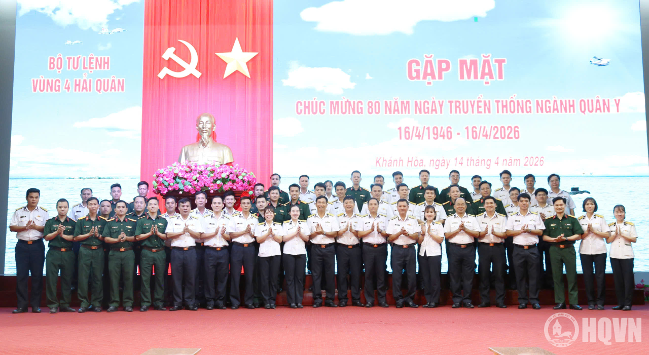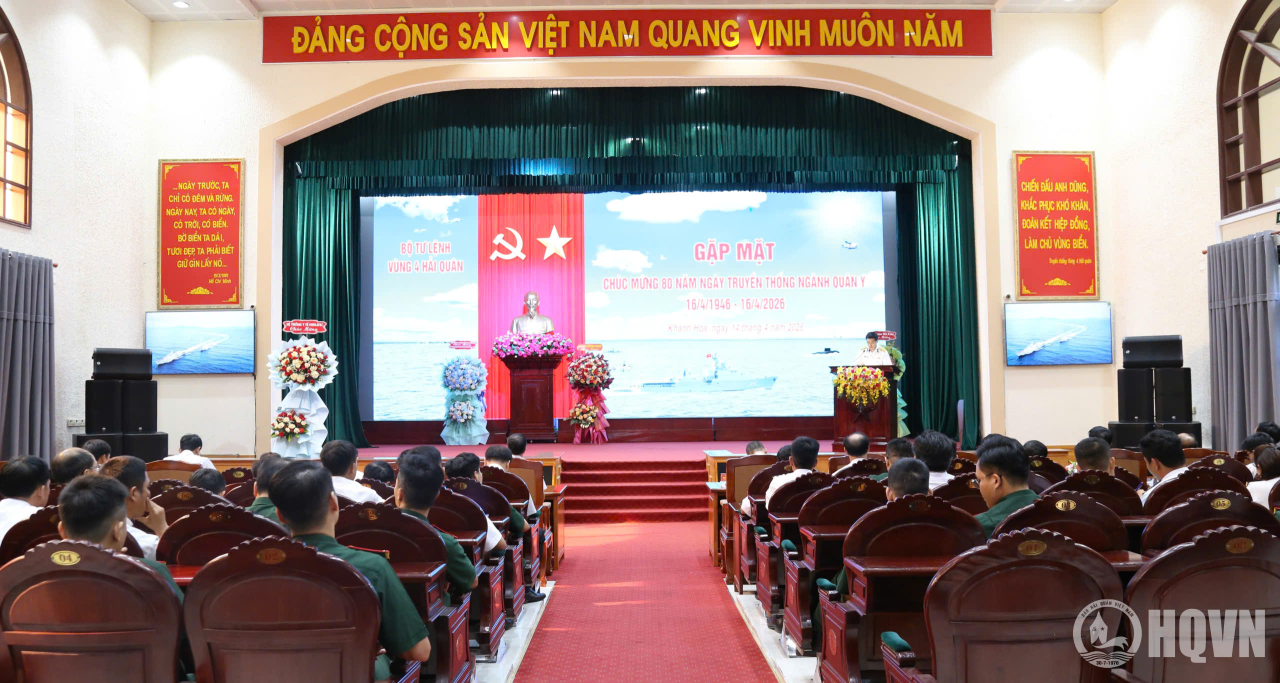HQ Online - Chiều 14/4, tại phường Bắc Cam Ranh, tỉnh Khánh Hòa, Bộ Tư lệnh Vùng 4 Hải quân tổ chức gặp mặt chúc mừng 80 năm Ngày truyền thống Ngành Quân y (16/4/1946 – 16/4/2026). Chuẩn Đô đốc Nguyễn Anh Tuấn, Tư lệnh Vùng dự buổi gặp mặt.