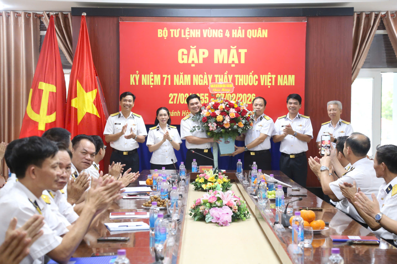 HQ Online - Chiều 26/2, tại phường Bắc Cam Ranh, tỉnh Khánh Hòa, Bộ Tư lệnh Vùng 4 Hải quân tổ chức gặp mặt kỷ niệm 71 năm Ngày Thầy thuốc Việt Nam (27/2/1955 – 27/2/2026). Đại tá Đỗ Minh, Phó Tư lệnh Vùng chủ trì buổi gặp mặt.