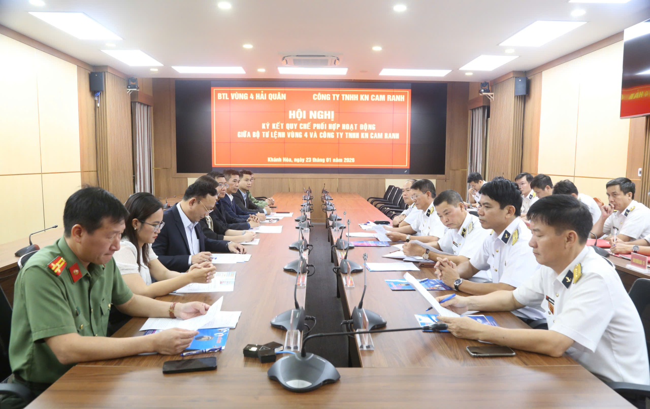 Tại hội nghị, đại diện lãnh đạo Bộ Tư lệnh Vùng 4 Hải quân và Công ty TNHH KN Cam Ranh đã ký kết biên bản phối hợp hoạt động.