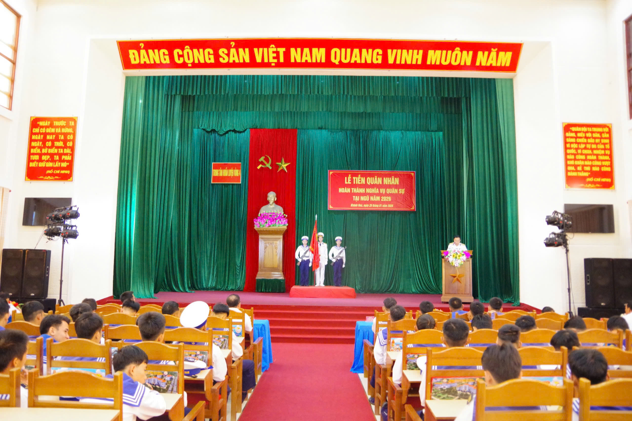 HQ Online - Sáng 28/1, tại phường Bắc Cam Ranh, tỉnh Khánh Hoà, Bộ Tư lệnh Vùng 4 Hải quân tổ chức lễ tiễn hạ sĩ quan-binh sĩ hoàn thành nghĩa vụ quân sự, xuất ngũ trở về địa phương năm 2026.