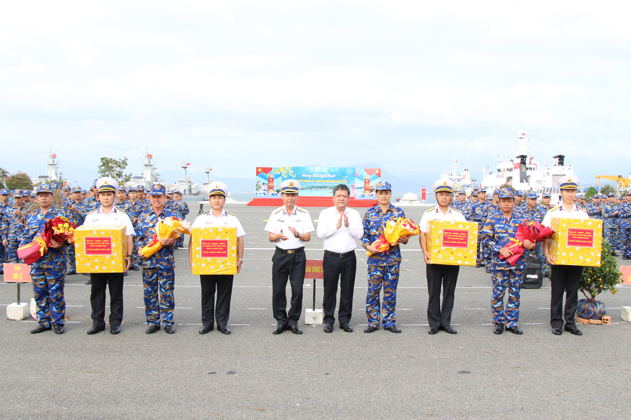 HQ Online - Sáng 6/1, tại Quân cảng Cam Ranh (phường Bắc Cam Ranh, tỉnh Khánh Hoà), Bộ Tư lệnh Vùng 4 Hải quân tổ chức lễ tiễn đoàn công tác đi thăm, động viên chúc tết quân dân đặc khu Trường Sa (tỉnh Khánh Hoà). Tham dự có đồng chí Trần Phong, Phó Bí thư Tỉnh ủy, Chủ tịch UBND tỉnh khánh Hòa; Chuẩn Đô đốc Nguyễn Anh Tuấn, Tư lệnh Vùng 4 Hải quân; các đồng chí trong Đảng uỷ, thủ trưởng Bộ Tư lệnh và lãnh đạo, chỉ huy các cơ quan, đơn vị thuộc Vùng 4; đại biểu các ban, ngành, đơn vị, đoàn thể tỉnh Khánh Hoà.