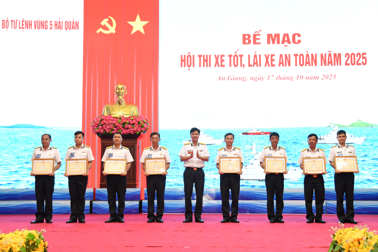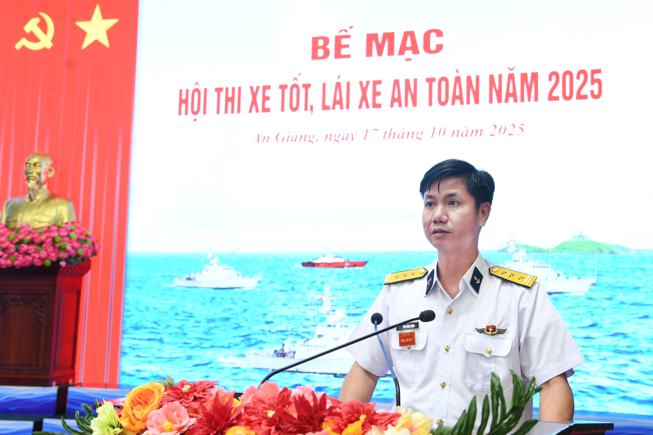 HQ Online - Chiều 17/10, tại đặc khu Phú Quốc, tỉnh An Giang, Bộ Tư lệnh Vùng 5 Hải quân tổ chức bế mạc Hội thi xe tốt, lái xe an toàn năm 2025. Thượng tá Mai Đăng Danh, Phó Tư lệnh, Tham mưu trưởng Vùng dự và chỉ đạo.