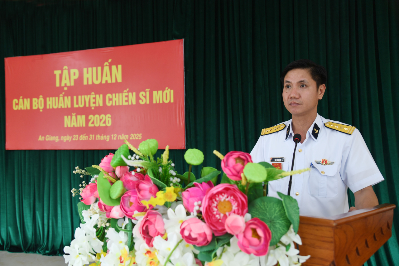 HQ Online - Chiều 31/12, tại đặc khu Phú Quốc, tỉnh An Giang, Bộ Tư lệnh Vùng 5 Hải quân tổ chức bế mạc lớp tập huấn cán bộ huấn luyện chiến sĩ mới năm 2026. Đại tá Mai Đăng Danh, Phó Tư lệnh, Tham mưu trưởng Vùng dự và chỉ đạo.