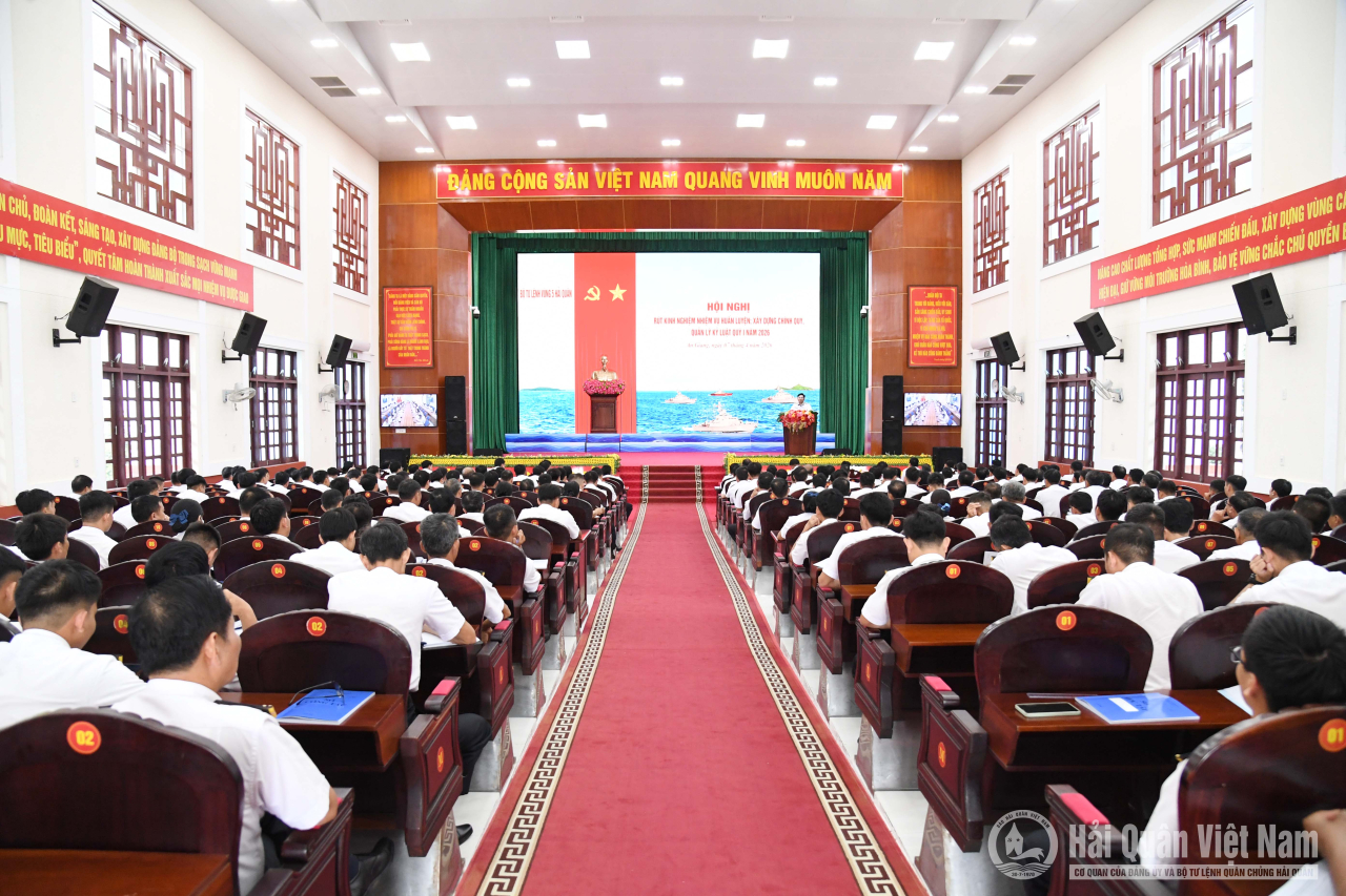 HQ Online - Chiều 7/4, tại đặc khu Phú Quốc, tỉnh An Giang, Bộ Tư lệnh Vùng 5 Hải quân tổ chức Hội nghị rút kinh nghiệm nhiệm vụ huấn luyện, xây dựng chính quy, quản lý kỷ luật quý I năm 2026. Chuẩn Đô đốc Trịnh Xuân Tùng, Tư lệnh Vùng 5 Hải quân dự và chỉ đạo. Cùng dự có các đồng chí trong Đảng ủy, thủ trưởng Bộ Tư lệnh Vùng và chỉ huy các cơ quan, đơn vị.