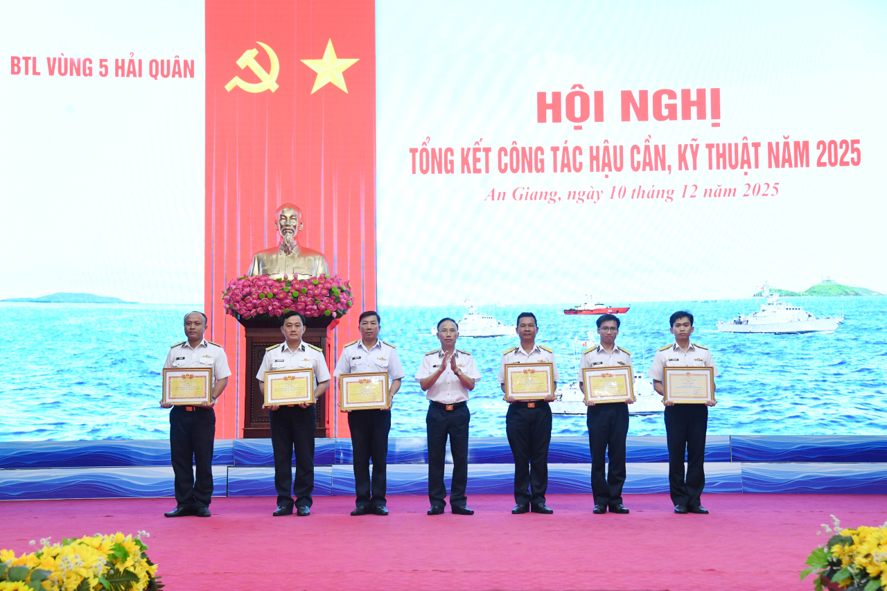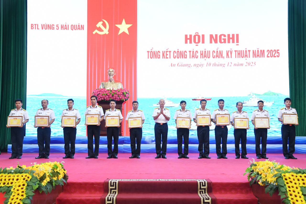Tại hội nghị, Bộ Tư lệnh Vùng 5 Hải quân đã trao thưởng 18 tập thể đạt thành tích tốt trong thực hiện công tác hậu cần, kỹ thuật và phong trào “Giữ tốt, dùng bền” năm 2025.