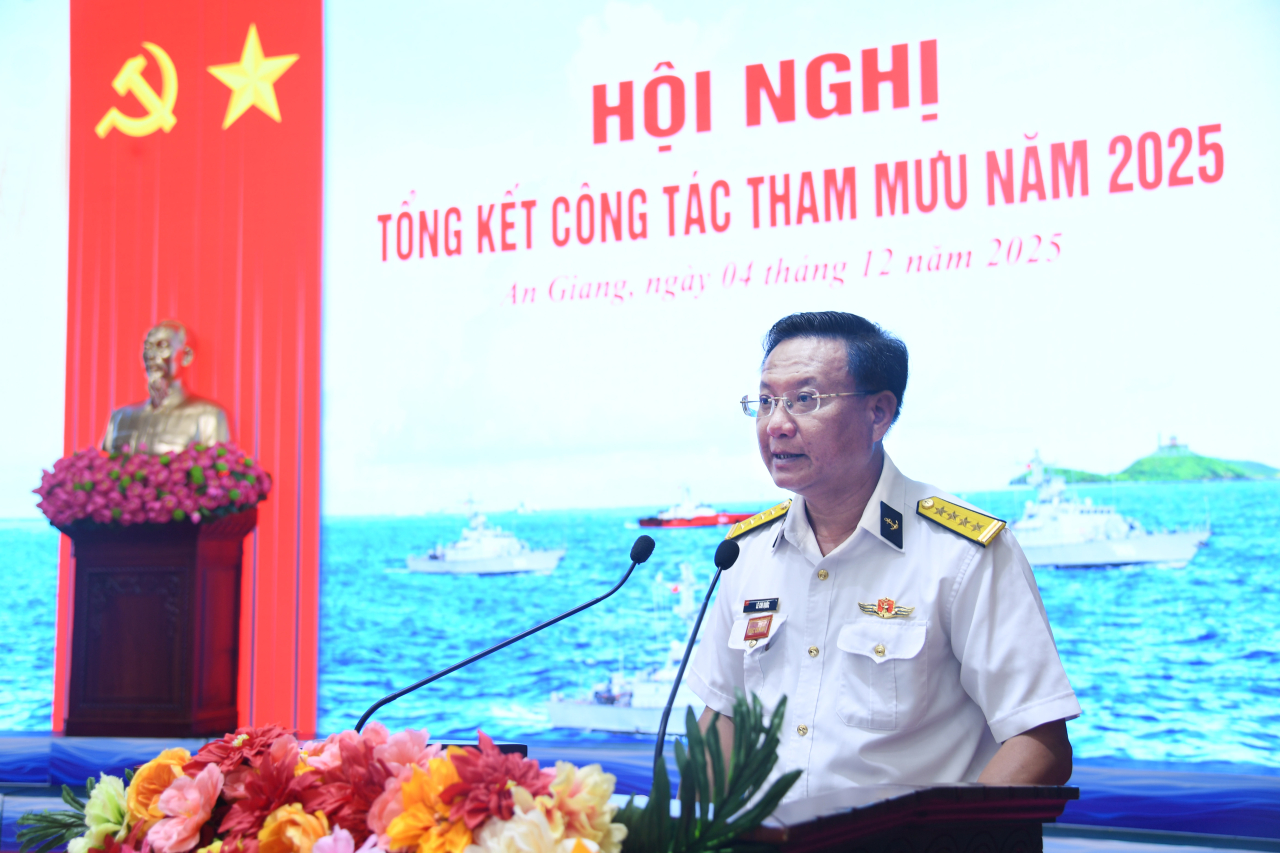 HQ Online - Sáng 4/12, tại đặc khu Phú Quốc, tỉnh An Giang, Bộ Tư lệnh Vùng 5 Hải quân tổ chức Hội nghị tổng kết công tác tham mưu năm 2025. Chuẩn Đô đốc Trịnh Xuân Tùng, Tư lệnh Vùng 5 dự và chỉ đạo. Đại tá Mai Đăng Danh, Phó Tư lệnh, Tham mưu trưởng Vùng chủ trì.