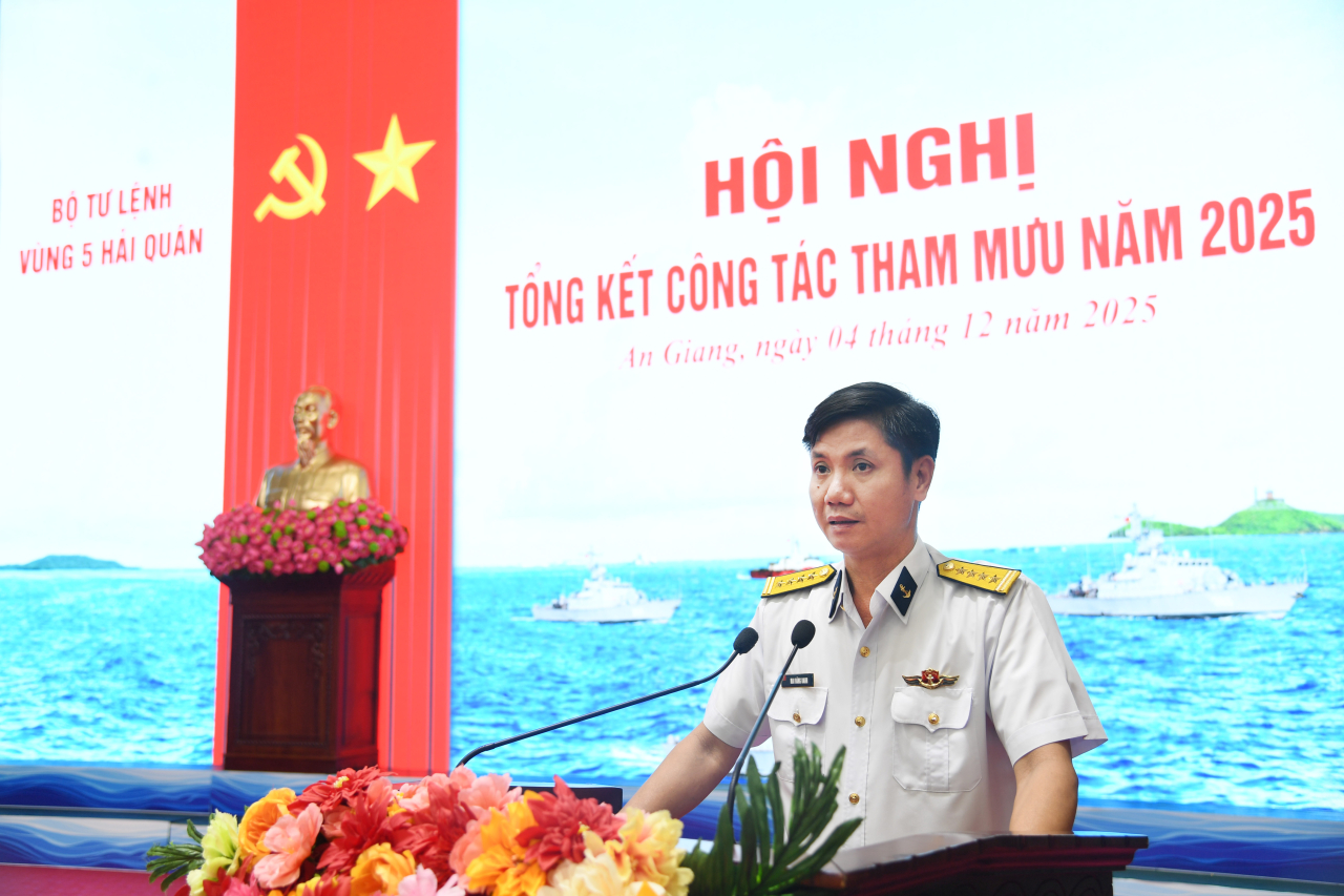 Năm 2025, Vùng 5 Hải quân đã bám sát nhiệm vụ chính trị trọng tâm, các khâu đột phá của công tác tham mưu; thực hiện nghiêm chỉ thị, mệnh lệnh sẵn sàng chiến đấu; tổ chức rà soát, điều chỉnh, bổ sung, hoàn thiện các văn kiện tác chiến theo địa danh mới, quy chế phối hợp theo đúng điều lệ công tác tham mưu tác chiến và hướng dẫn của Quân chủng.