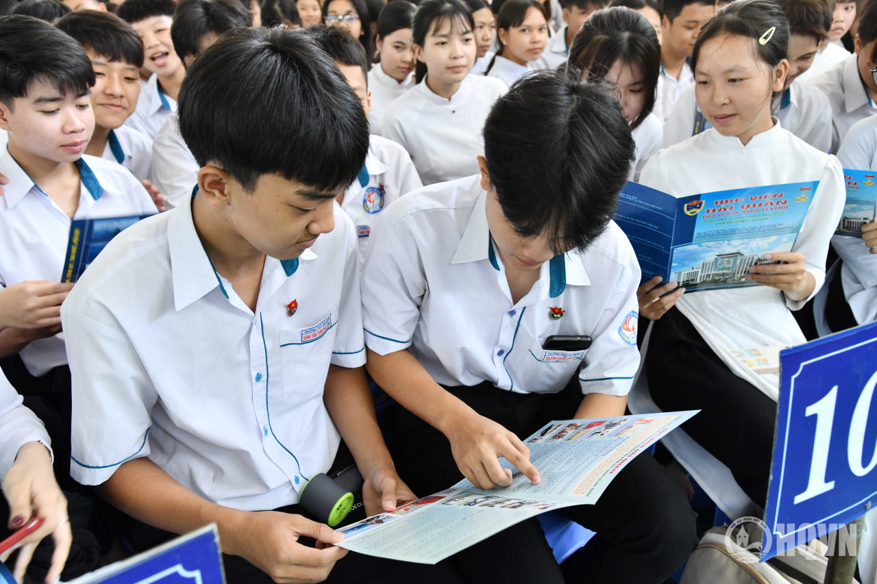 Trong khuôn khổ chương trình, báo cáo viên cũng cung cấp thông tin về môi trường học tập, rèn luyện trong Quân đội; tiêu chuẩn, quy trình đăng ký tuyển sinh vào Học viện Hải quân và Trường Cao đẳng Kỹ thuật Hải quân năm 2026. Qua đó giúp học sinh có thêm nguồn thông tin chính thống để định hướng nghề nghiệp, đồng thời khơi dậy tinh thần trách nhiệm, khát vọng cống hiến của tuổi trẻ đối với sự nghiệp bảo vệ chủ quyền biển đảo của Tổ quốc.