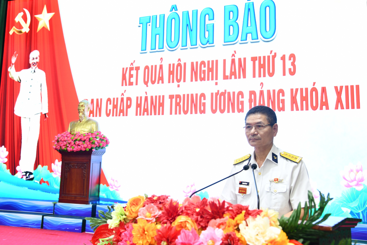 HQ Online - Sáng 17/10, tại đặc khu Phú Quốc, tỉnh An Giang, Bộ Tư lệnh Vùng 5 Hải quân tổ chức Hội nghị thông báo nhanh kết quả Hội nghị lần thứ 13 Ban Chấp hành Trung ương Đảng khóa XIII và Đại hội đại biểu Đảng bộ Quân đội lần thứ XII, nhiệm kỳ 2025-2030. Đại tá Phạm Hồng Soi, Phó Chủ nhiệm Chính trị Vùng chủ trì. Tham dự hội nghị có cán bộ, đảng viên là cấp uỷ viên cấp tàu, đại đội và tương đương, sĩ quan cấp tá; sĩ quan, quân nhân chuyên nghiệp khối cơ quan Bộ Tư lệnh Vùng.