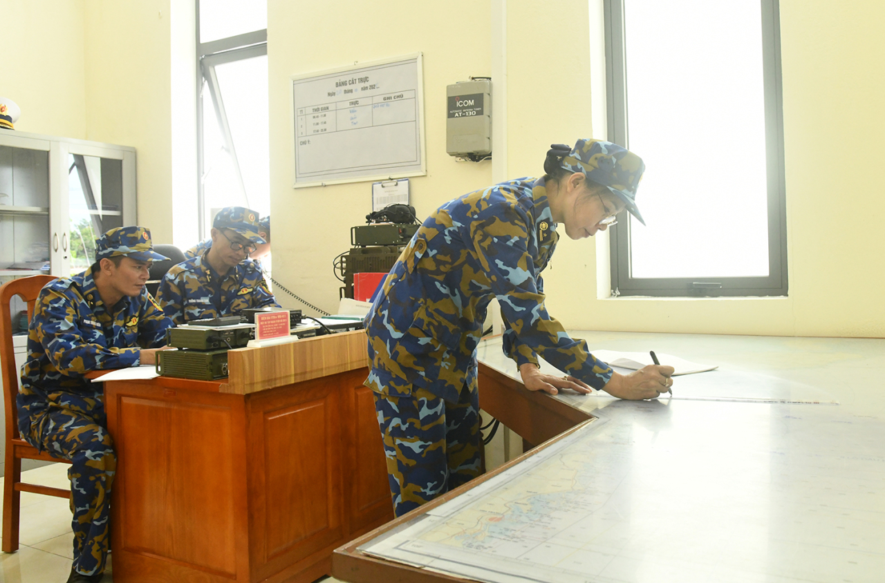 Cán bộ, chiến sĩ các trạm ra đa kết hợp các trang bị, khí tài tăng cường quan sát, đặc biệt là trong thời điểm bão đổ bộ