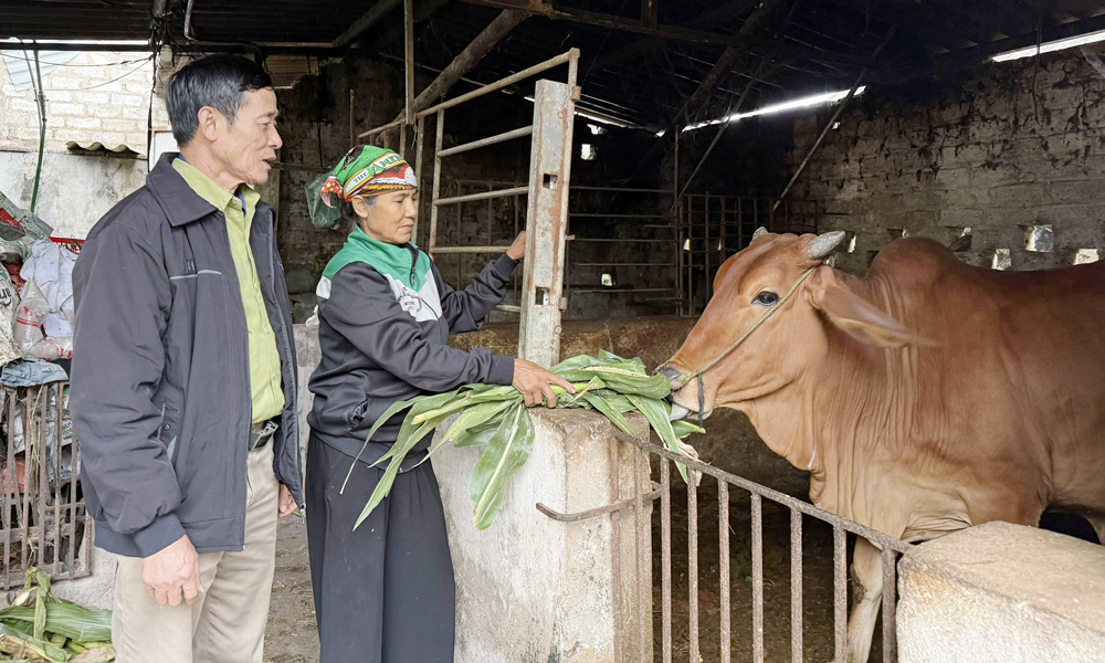 Nhờ huy động tốt các nguồn lực, người dân có điều kiện phát triển sản xuất, từng bước vươn lên trong cuộc sống. Ông Dương Văn Thuyết, Trưởng thôn Đồng 1 cho biết: “Thôn có 213 hộ, 832 nhân khẩu. Từ khi được hỗ trợ vốn, giống và tập huấn kỹ thuật, các hộ đều có ý thức chăm sóc cây trồng, vật nuôi, nhiều gia đình đã có thu nhập ổn định, từng bước thoát nghèo. Hiện thôn còn 2 hộ nghèo và 5 hộ cận nghèo”. Gia đình anh Vũ Văn Phú ở thôn Đồng 1 có hoàn cảnh khó khăn và là hộ nghèo nhiều năm ở địa phương. Năm 2023, vợ chồng anh được nhận nuôi 1 con bò sinh sản từ Chương trình mục tiêu quốc gia về giảm nghèo bền vững. Do được tập huấn, tuân thủ đúng kỹ thuật chăn nuôi nên bò phát triển khỏe mạnh. Ngoài ra, anh chị còn nuôi thêm gà, đi làm công nhân để tăng thêm thu nhập. Nhờ đó, cuộc sống bớt khó khăn. Năm 2024, gia đình anh thuộc diện hộ cận nghèo và phấn đấu thoát nghèo trong năm nay.