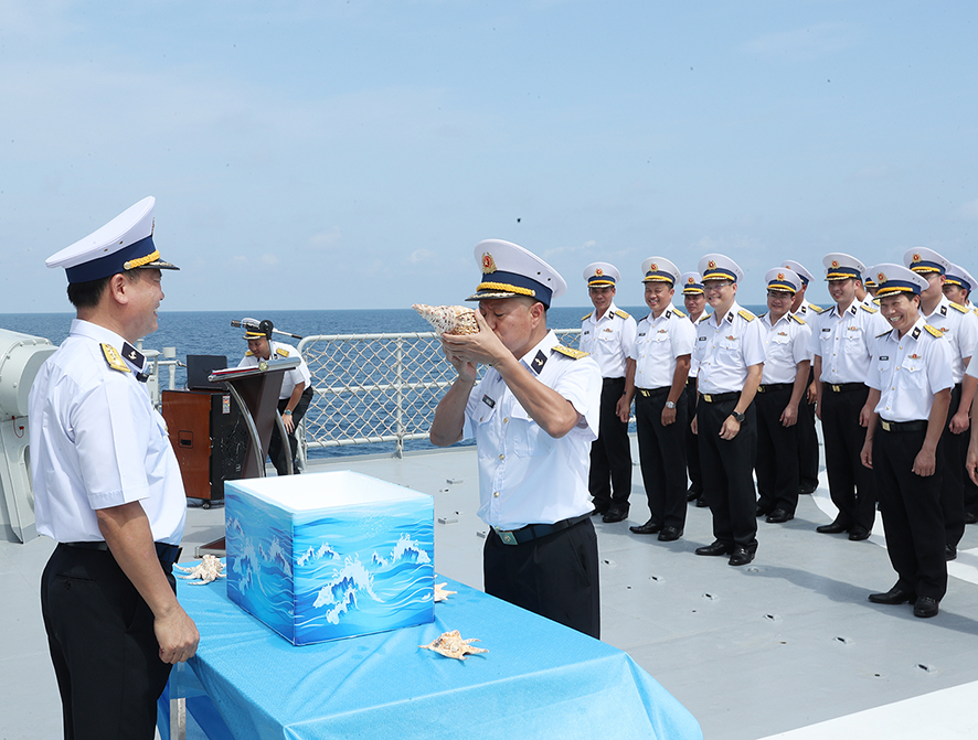 HQ Online - Trên hải trình đến Australia tham dự Lễ duyệt binh tàu quốc tế và Diễn tập hải quân đa phương (Kakadu-2026), Tàu 016-Quang Trung, Lữ đoàn 162, Vùng 4 Hải quân nhân dân Việt Nam đã vượt qua đường xích đạo. Nghi thức lễ qua đường xích đạo đã được tổ chức trên sân trực thăng của Tàu 016. Đại tá Nguyễn Minh Lành, Phó Tham mưu trưởng Vùng 4 Hải quân, Trưởng đoàn công tác chủ trì buổi lễ.