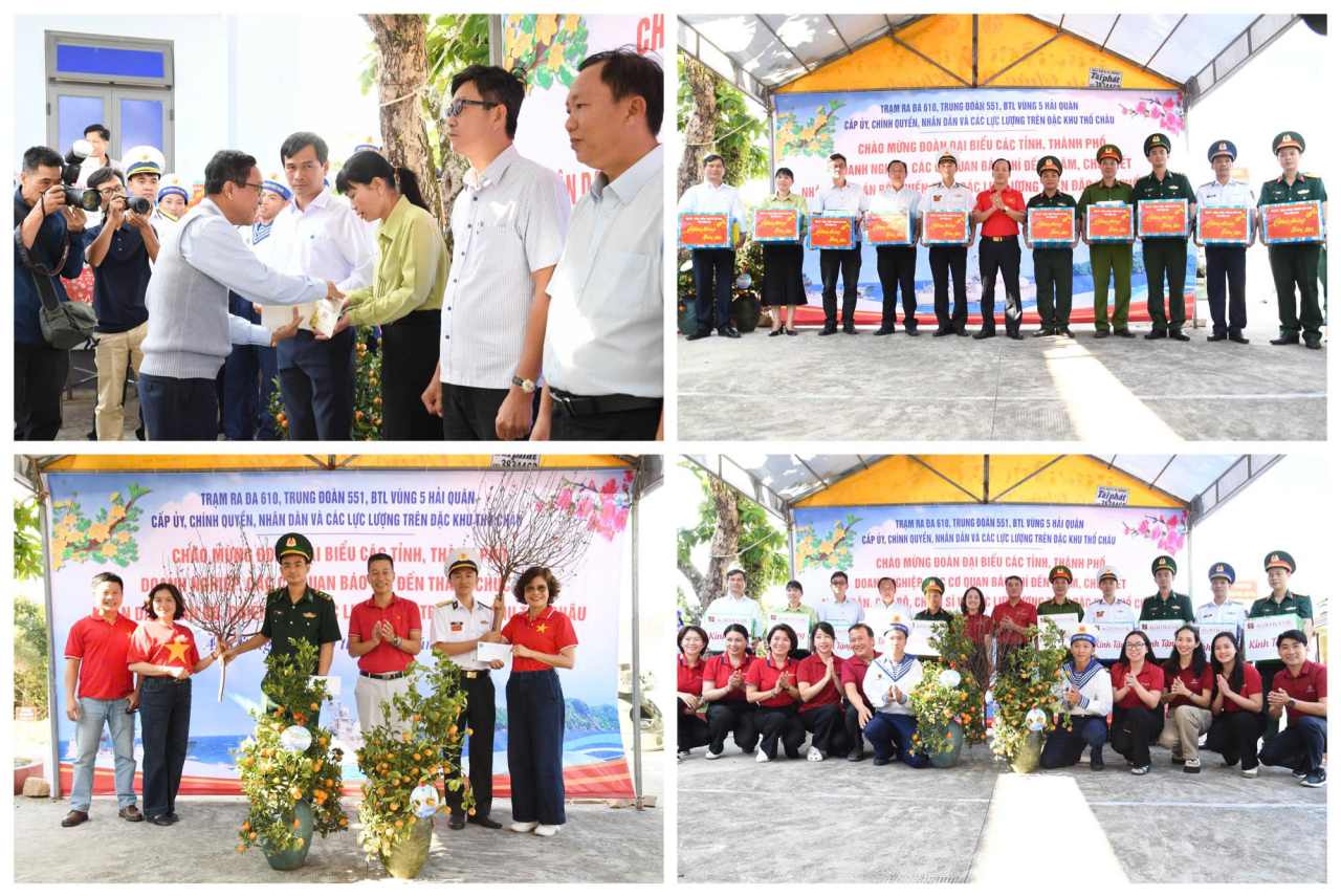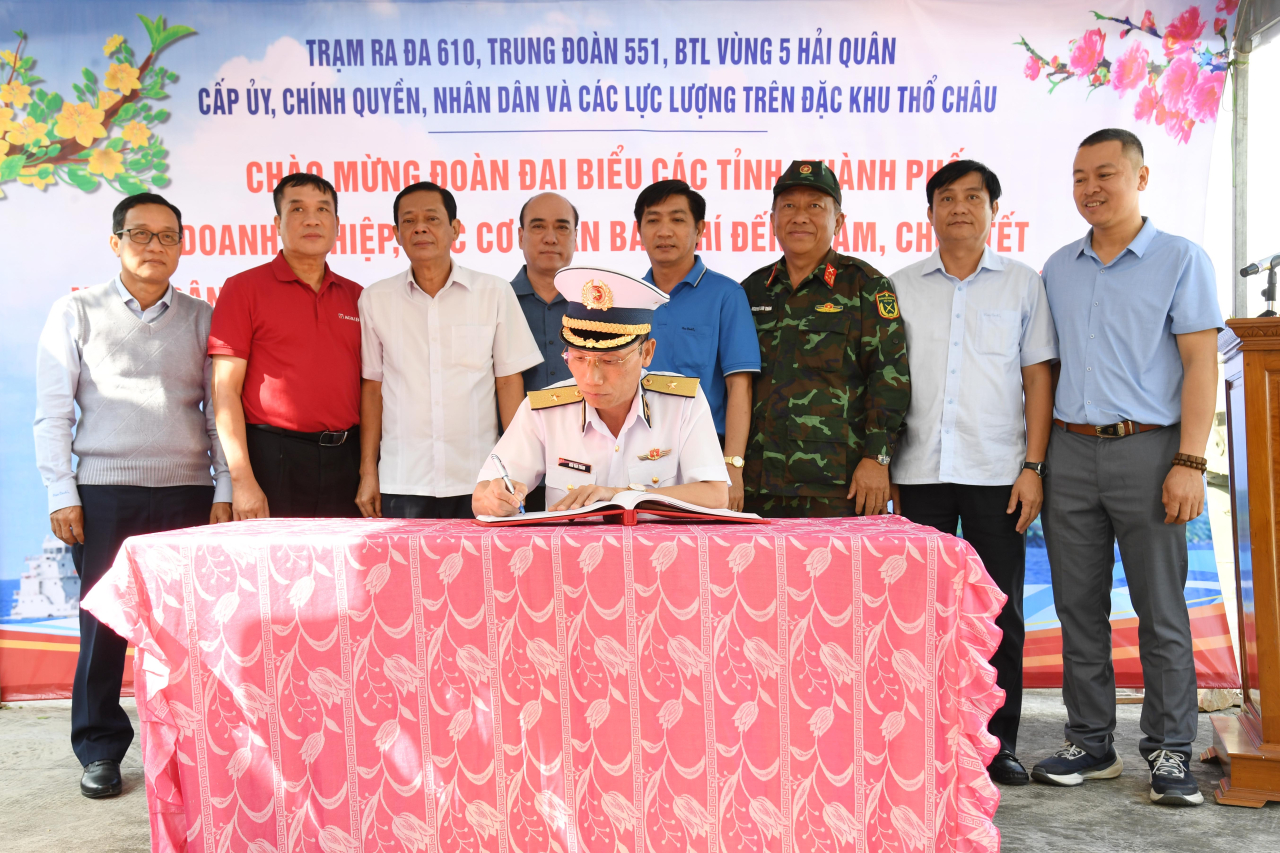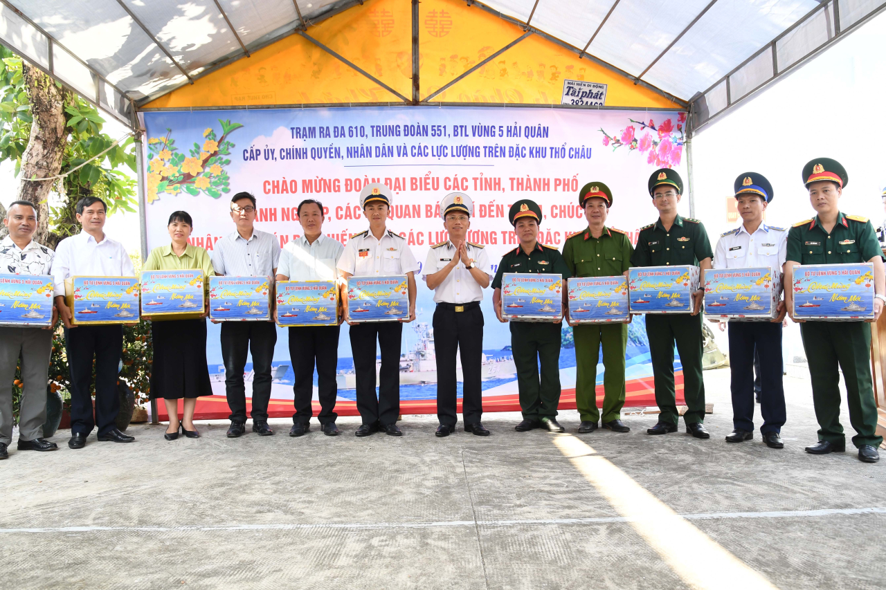 Tiếp đó, tại Trạm Ra đa 610 (Trung đoàn 551, Vùng 5 Hải quân), đoàn công tác đã ân cần thăm hỏi, động viên, chúc Tết, tặng quà cán bộ, chiến sĩ đơn vị, cấp ủy, chính quyền địa phương và các lực lượng đang thực hiện nhiệm vụ trên đảo.