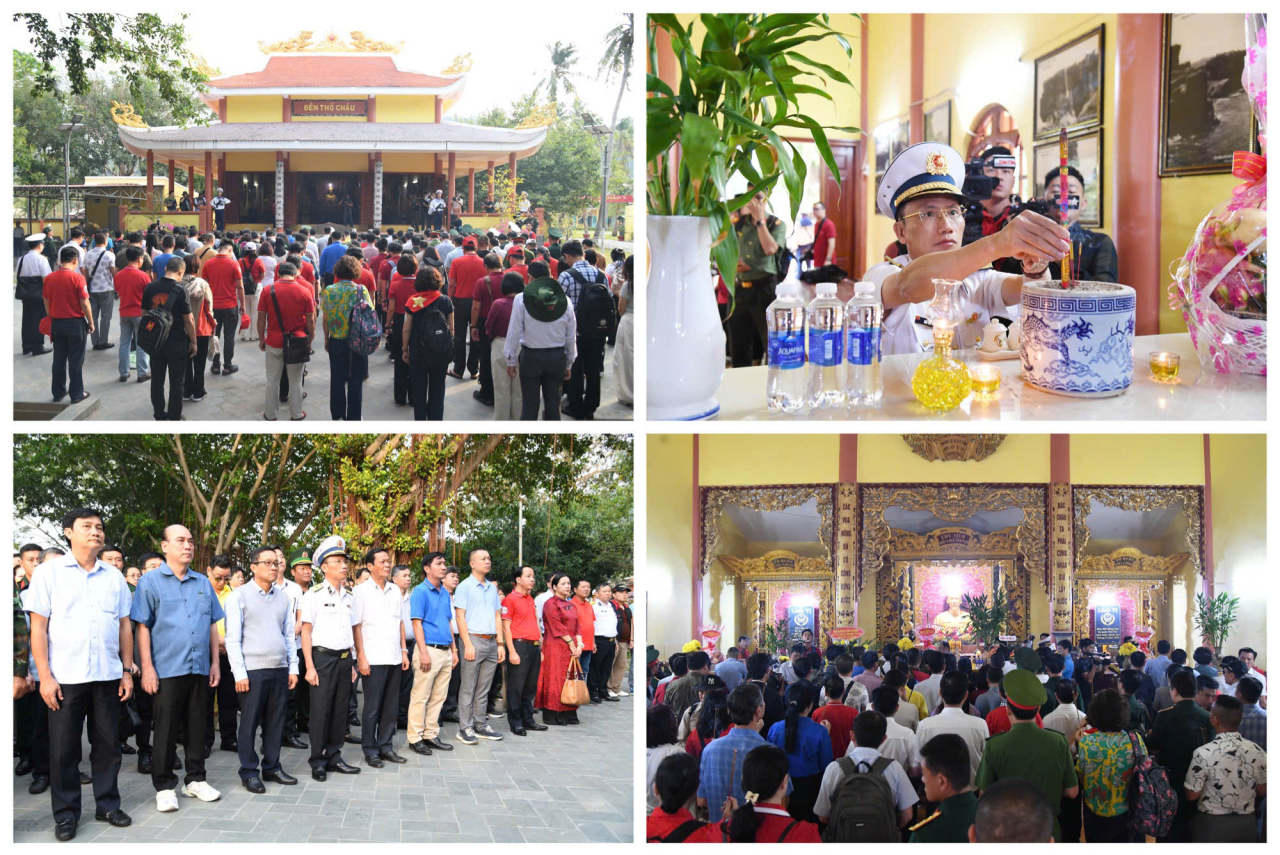Trong không khí trang nghiêm trên đảo Thổ Chu, đoàn công tác đã dâng hoa, dâng hương tại Đền thờ Thổ Châu, thành kính tưởng nhớ anh linh Chủ tịch Hồ Chí Minh, các anh hùng liệt sĩ và hơn 500 đồng bào bị quân Khmer Đỏ sát hại năm 1975.
