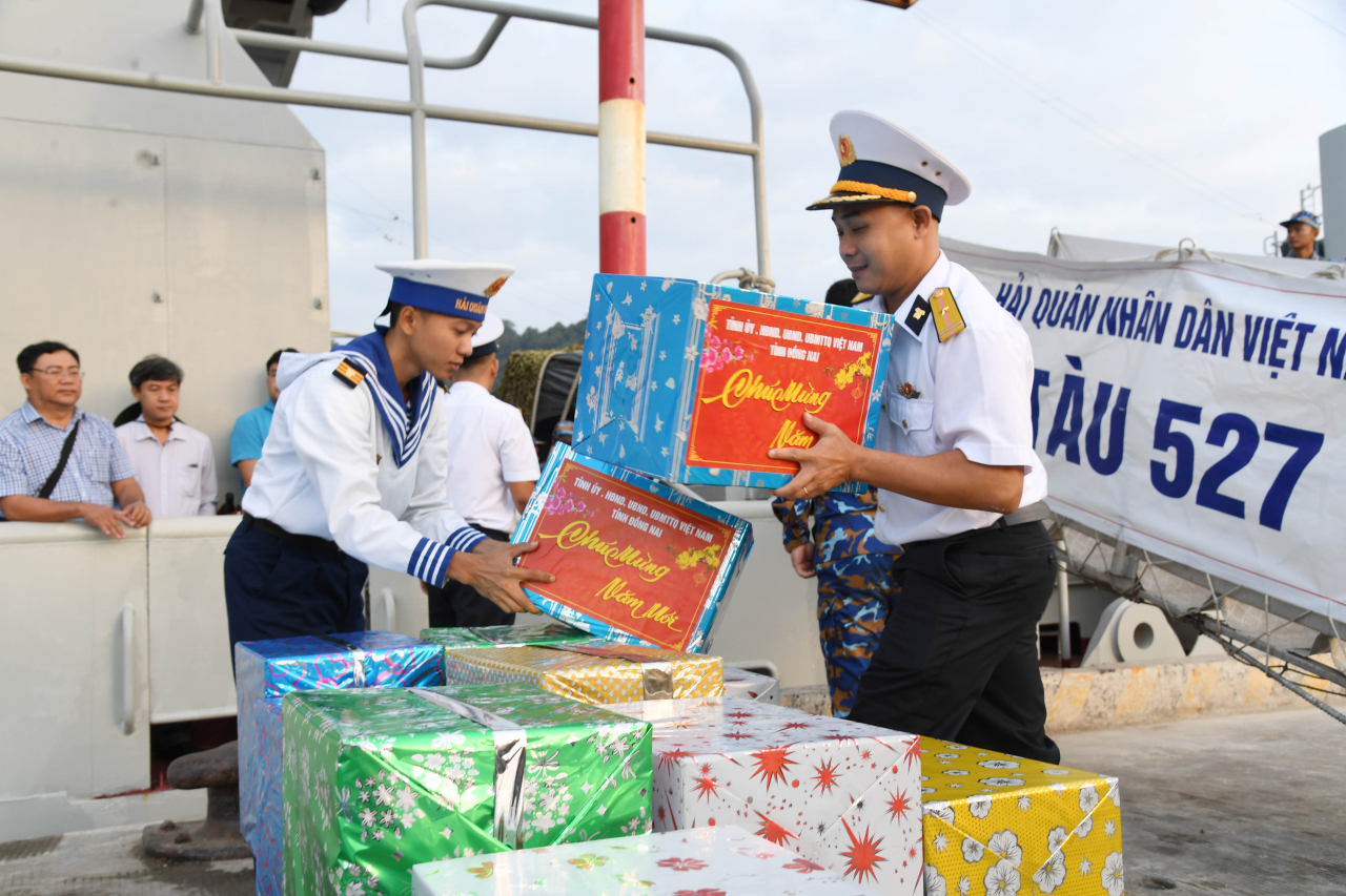 Cán bộ, chiến sĩ Vùng 5 Hải quân chuyển quà Tết lên đảo