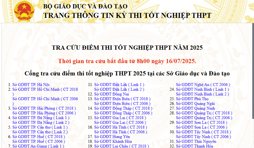 Bắt đầu từ 8 giờ sáng nay (16/7), Bộ Giáo dục và Đào tạo cùng các Sở Giáo dục và Đào tạo chính thức công bố điểm thi tốt nghiệp Trung học phổ thông năm 2025.