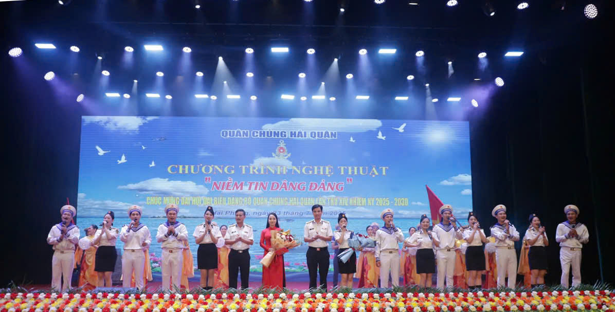 HQ Online - Tối 23/7, tại thành phố Hải Phòng, Quân chủng Hải quân đã tổ chức chương trình nghệ thuật đặc biệt với chủ đề “Niềm tin dâng Đảng” chào mừng thành công Đại hội đại biểu Đảng bộ Quân chủng Hải quân lần thứ XIV, nhiệm kỳ 2025-2030. Đến dự chương trình có thủ trưởng các cơ quan, đơn vị và cán bộ, chiến sĩ thuộc các đơn vị đóng quân trên địa bàn thành phố Hải Phòng.