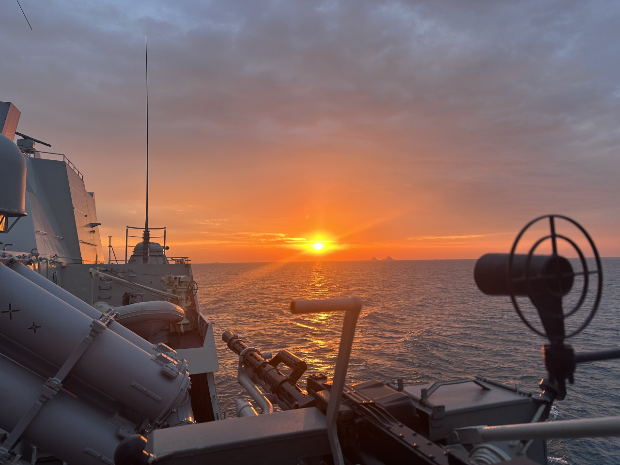 Sau cơn mưa trời lại sáng. Vượt qua eo biển Đài Loan, mặt trời bắt đầu ló rạng. Khi tàu cập cảng nước bạn, vẻ ngoài xám xịt vì muối mặn của những ngày bão tố nhanh chóng được thay thế bằng diện mạo tươi mới, trang nghiêm. Những tổ làm boong miệt mài lau chùi, sơn sửa, đưa Tàu 015 trở về trạng thái hoàn hảo nhất để đón khách quốc tế.