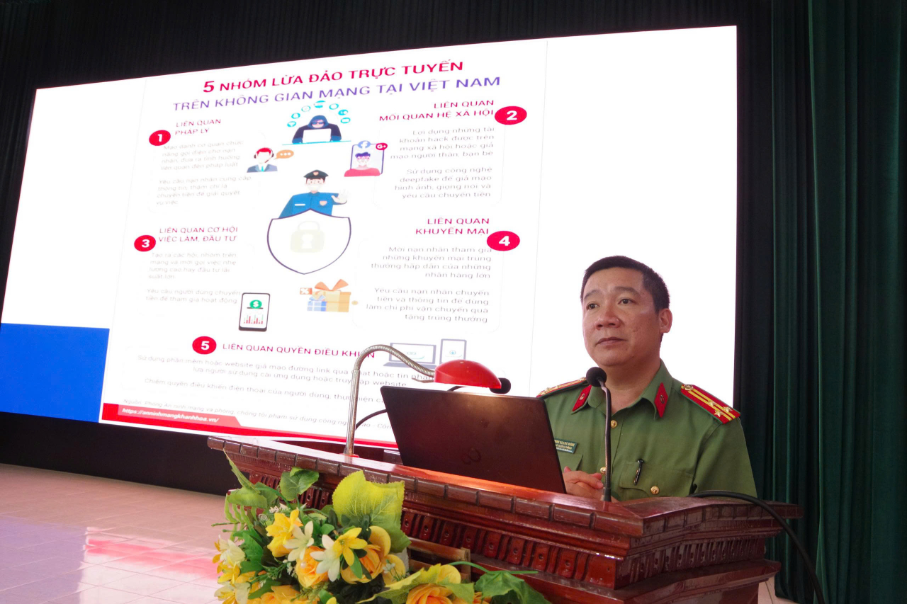 Tại hội nghị, Thượng tá Đinh Quang Hưng, Phó trưởng phòng An ninh mạng và Phòng chống tội phạm sử dụng công nghệ cao, Công an tỉnh Khánh Hòa, đã truyền đạt các chuyên đề: tình hình tội phạm công nghệ cao, an ninh mạng; biện pháp phòng ngừa, ngăn chặn hành vi lừa đảo, xâm nhập dữ liệu, phát tán thông tin xấu độc; các quy định pháp luật về bảo vệ bí mật Nhà nước, giữ gìn an ninh, trật tự trong lực lượng vũ trang.