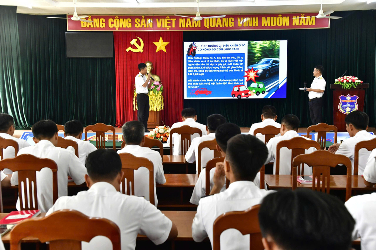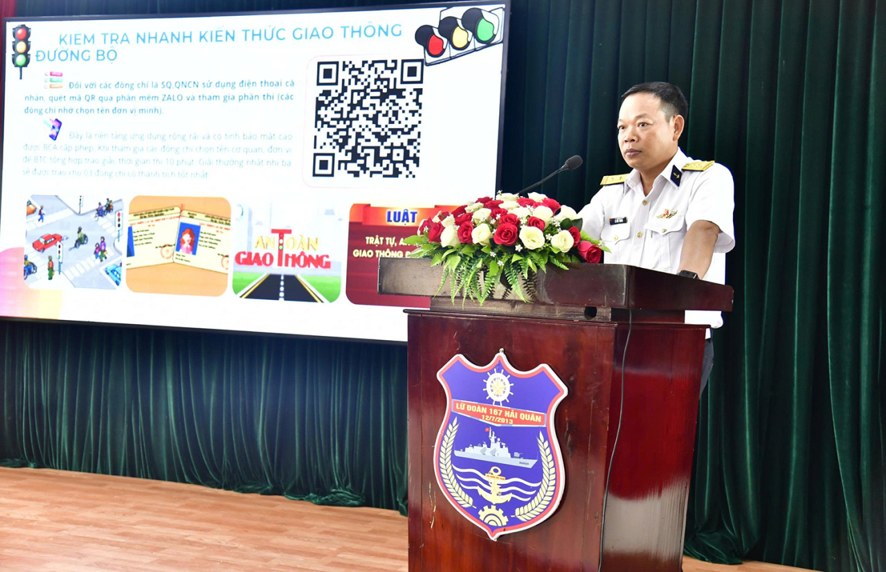 HQ Online - Ngày 13/11, tại xã Long Sơn (TP Hồ Chí Minh), Lữ đoàn 167, Vùng 2 Hải quân tổ chức hoạt động sân khấu hóa Ngày pháp luật tháng 11 với chủ đề “Cán bộ, chiến sĩ Lữ đoàn 167 vững tay lái giữ an toàn giao thông, bảo vệ chính mình và đồng đội”. Thượng tá Lê Đức Thảnh, Lữ đoàn trưởng dự và chỉ đạo.
