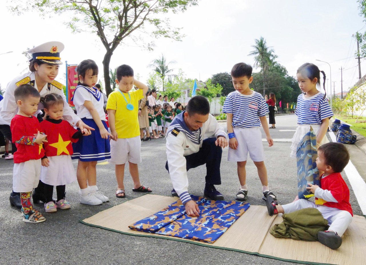Học sinh các trường mầm non trên địa bàn tham gia các hoạt động trải nghiệm cùng cán bộ, chiến sĩ Lữ đoàn 83