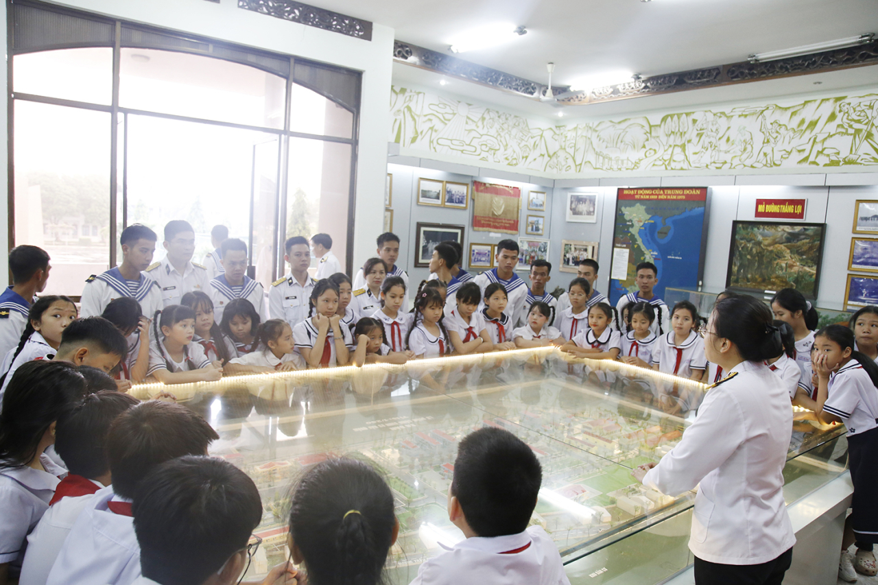 Tại chương trình, các em được giao lưu văn nghệ, xem biểu diễn võ thể dục, tham quan Phòng truyền thống của Lữ đoàn. Đồng thời tham quan nơi học tập, sinh hoạt; hoạt động huấn luyện của cán bộ, chiến sĩ đơn vị; được hướng dẫn cách gấp chăn, màn, sắp xếp nội vụ vệ sinh; tham gia một số trò chơi và chụp ảnh lưu niệm tại công trình cột mốc bia chủ quyền Trường Sa.