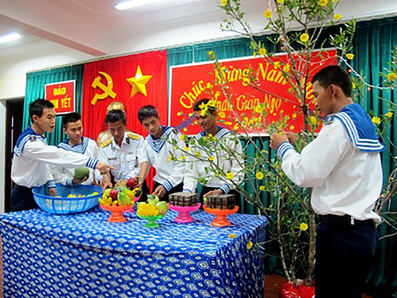 Tết ở Trường Sa vẫn đủ đầy hương vị truyền thống. Bánh chưng được gói từ những bàn tay rắn rỏi của lính đảo. Lá dong, gạo nếp, đậu xanh, thịt lợn… tất cả đều được chuẩn bị chu đáo từ đất liền chuyển ra. Ngày cận Tết, chúng tôi quây quần bên nồi bánh chưng nghi ngút khói. Gió biển thổi lồng lộng, nhưng câu chuyện về quê hương, về người thân khiến không khí trở nên ấm áp. Có đồng chí quê tận miền Trung, năm nay lỡ hẹn với bữa cơm tất niên của gia đình; có người vừa cưới vợ chưa đầy tháng đã lên đường làm nhiệm vụ. Mỗi người một hoàn cảnh, nhưng tất cả đều chung một niềm tin: Giữ vững chủ quyền biển đảo là giữ bình yên cho triệu mái nhà sum họp.