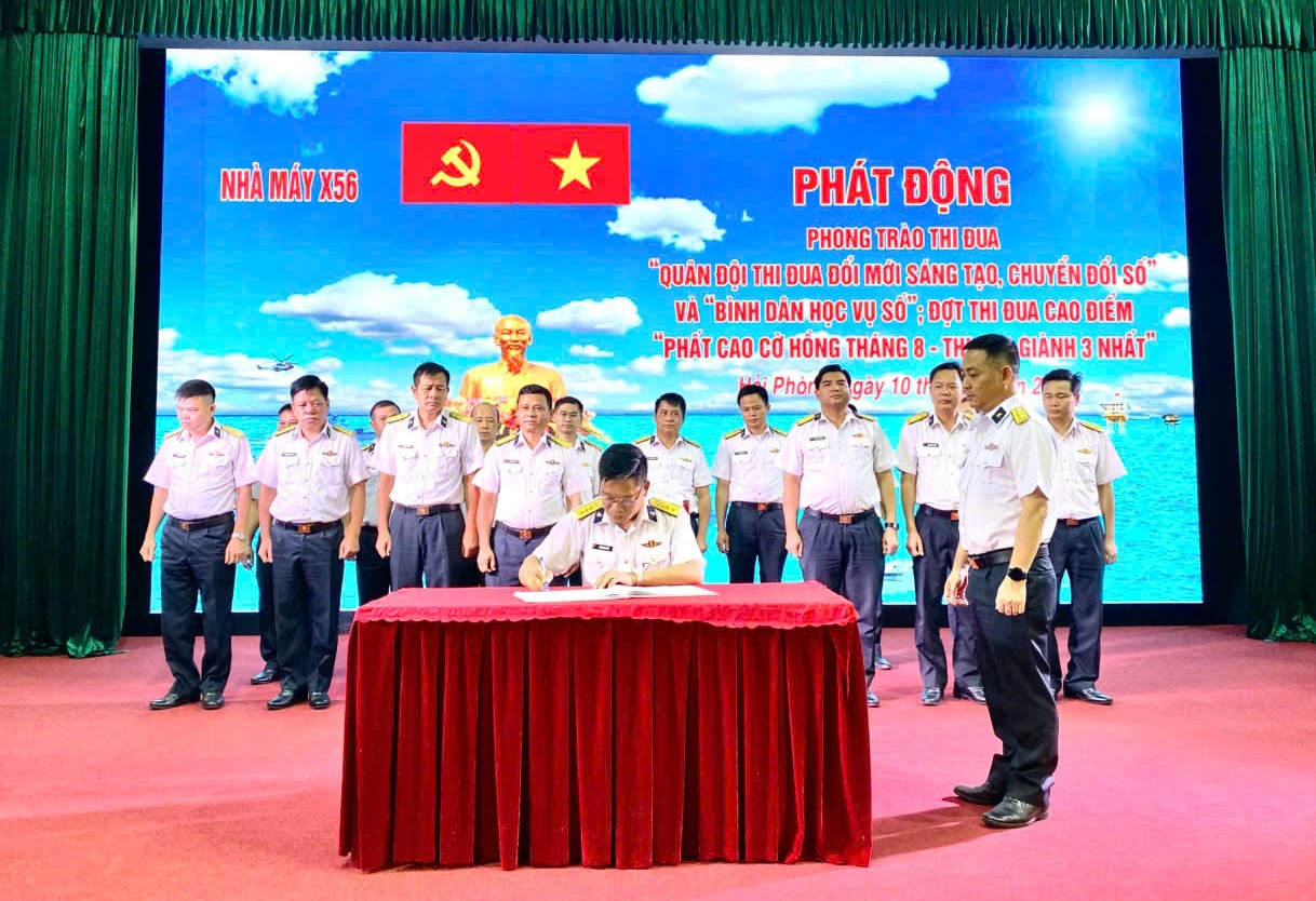 HQ Online - Chiều 10/7, tại Hải Phòng, Nhà máy X56, Cục Hậu cần - Kỹ thuật Hải quân tổ chức phát động phong trào thi đua “Quân đội thi đua đổi mới sáng tạo, chuyển đổi số” và “Bình dân học vụ số”; đợt thi đua cao điểm chào mừng kỷ niệm 80 năm Cách mạng tháng Tám và Quốc khánh nước Cộng hoà XHCN Việt Nam (2/9/1945 - 2/9/2025); chào mừng Đại hội đại biểu Đảng bộ Quân chủng Hải quân lần thứ XIV, Đại hội đại biểu Đảng bộ Quân đội lần thứ XII. Đại tá Ngô Quang Hải, Chính ủy Nhà máy dự, chủ trì.