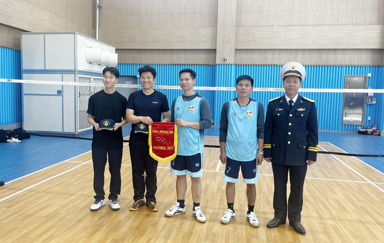 Hoạt động giao lưu cầu lông giữa sĩ quan, thủy thủ hai nước diễn ra trong không khí sôi nổi, với nhiều pha cầu hấp dẫn, gay cấn trên tinh thần thể thao hữu nghị, đoàn kết.