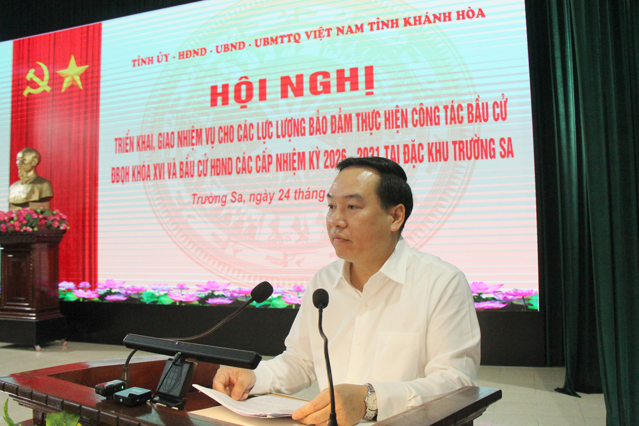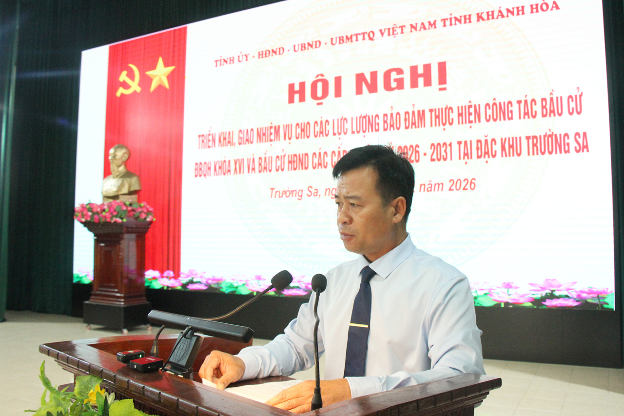 HQ Online - Sáng 24/2, Tỉnh uỷ, HĐND, UBND, UBMTTQ Việt Nam tỉnh Khánh Hoà tổ chức Hội nghị triển khai, giao nhiệm vụ cho các lực lượng bảo đảm thực hiện công tác bầu cử đại biểu Quốc hội khóa XVI và Hội đồng nhân dân các cấp nhiệm kỳ 2026–2031 tại đặc khu Trường Sa.