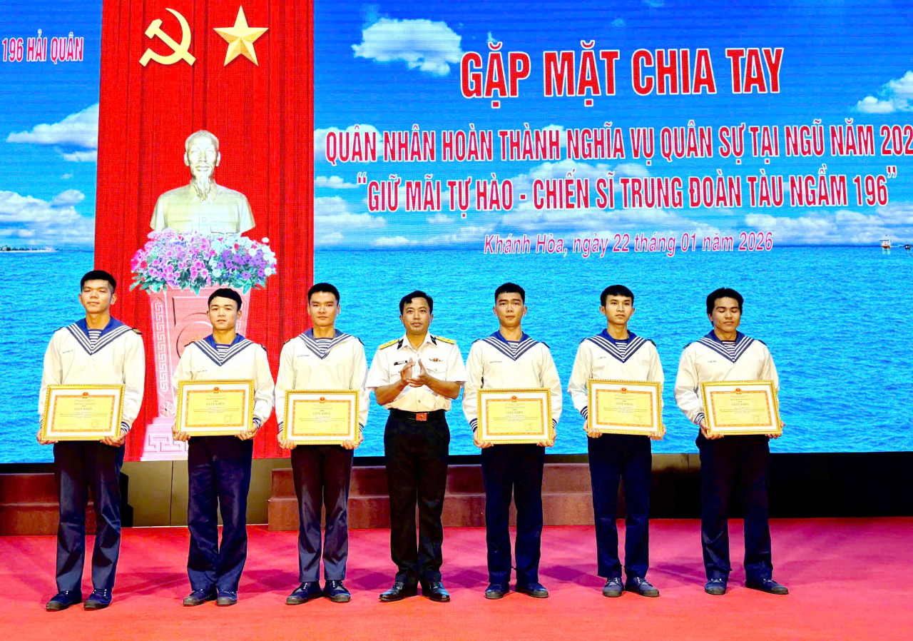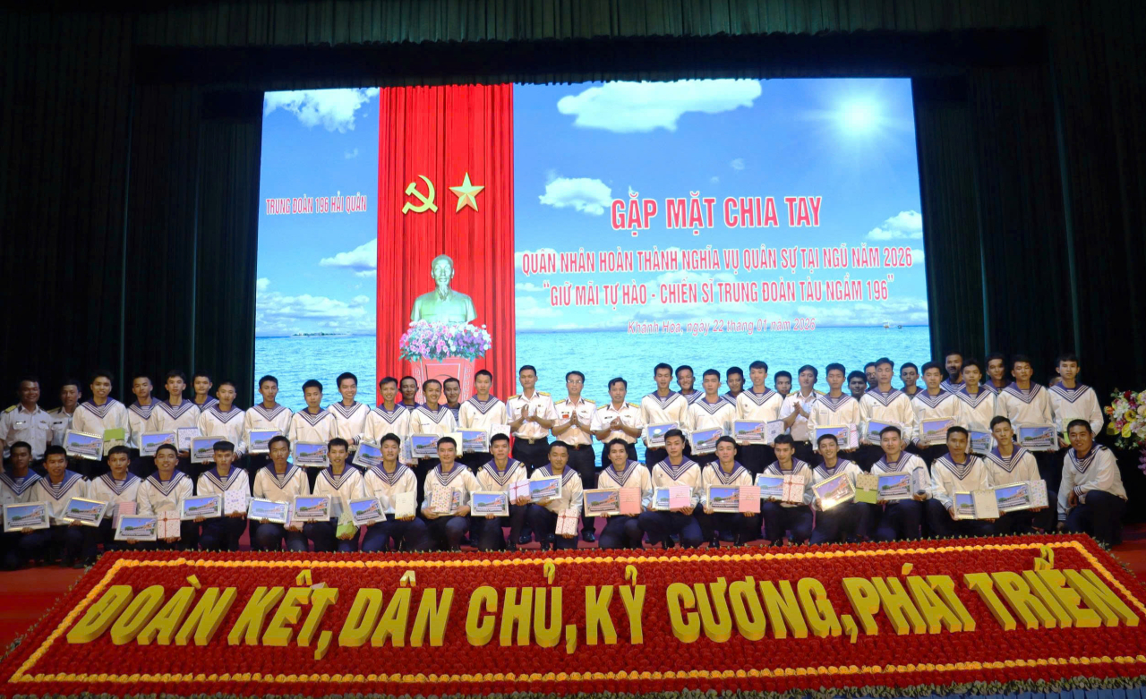 HQ Online - Tối 22/1, tại phường Bắc Cam Ranh, tỉnh Khánh Hòa, Trung đoàn 196 Hải quân tổ chức chương trình gặp mặt, chia tay chiến sĩ xuất ngũ năm 2026 với chủ đề “Giữ mãi tự hào-Chiến sĩ Trung đoàn 196”.