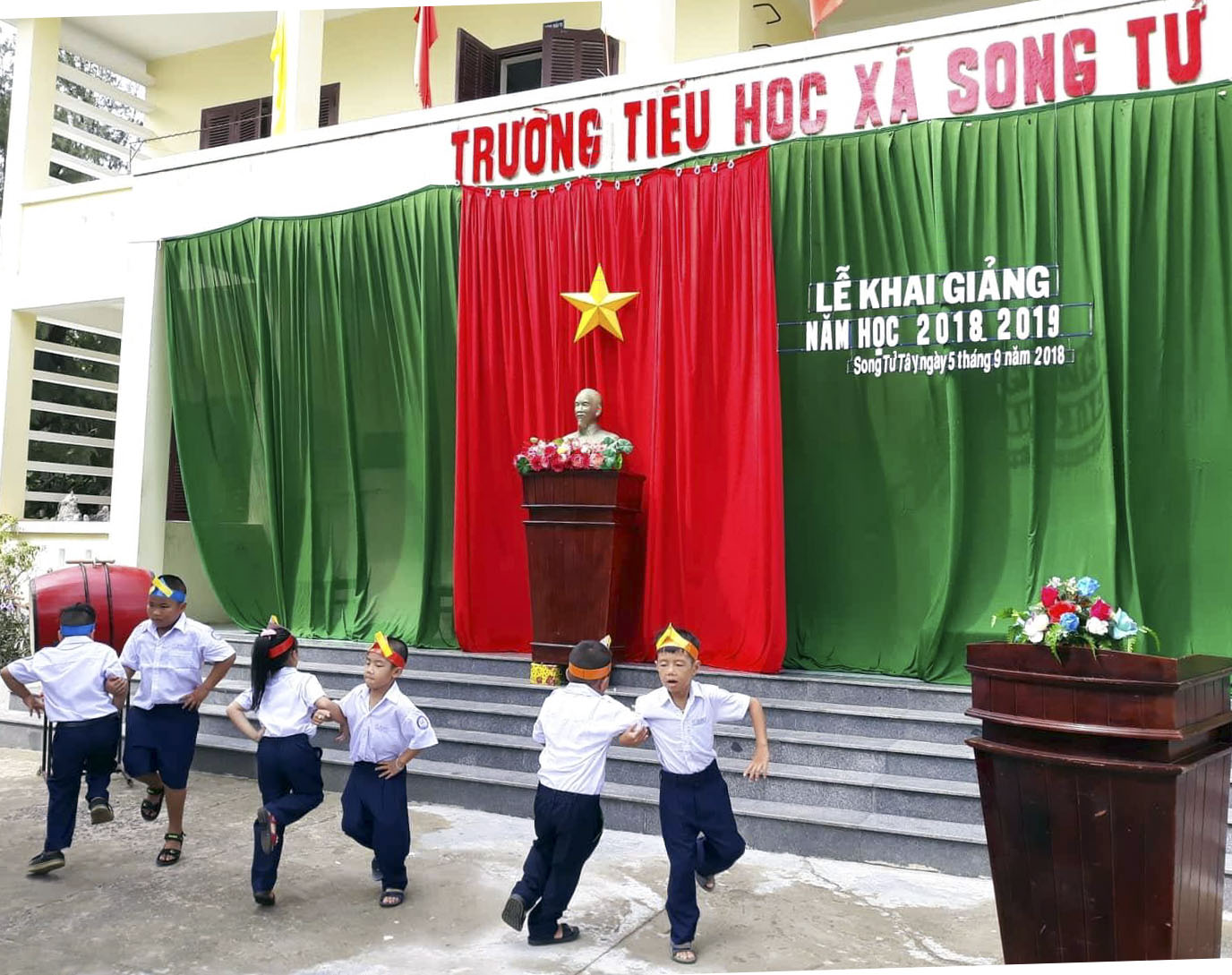 Các cháu học sinh biểu diễn văn nghệ tại lễ khai giảng