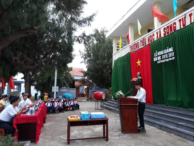 Thay mặt cho lãnh chính quyền xã, đồng chí Nguyễn Đăng Hồng Chủ tịch HĐND xã đọc thư chúc mừng của Chủ tịch nước gửi các cháu học sinh nhân ngày khai trường và phát biểu động viên thầy và trò của trường tiếp tục nỗ lực phấn đấu, khắc phục khó khăn, thi đua “Dạy tốt và học tốt” xứng đáng với truyền thống của đảo Song Tử Tây anh hùng.