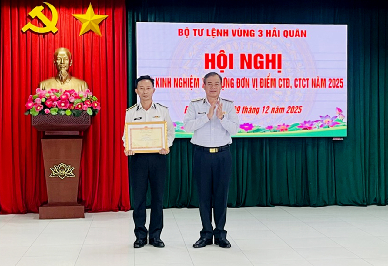 Nhân dịp này, Bộ Tư lệnh Vùng 3 Hải quân đã trao Giấy khen tặng 1 tập thể có thành tích tốt trong thực hiện nhiệm vụ xây dựng đơn vị điểm toàn diện về hoạt động CTĐ, CTCT năm 2025.