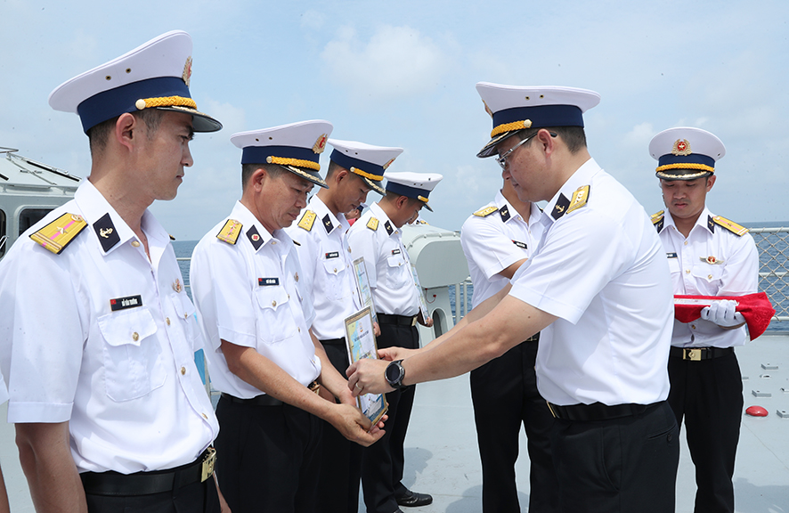 Thay mặt đoàn công tác, Đại tá Nguyễn Minh Lành nhiệt liệt chúc mừng toàn thể cán bộ, chiến sĩ Tàu 016-Quang Trung và các lực lượng tham gia chuyến hải trình lịch sử đã chính thức vượt qua đường xích đạo, một kỷ niệm đáng nhớ, đánh dấu cột mốc quan trọng trong đời quân ngũ và nghề đi biển của mỗi thủy thủ.