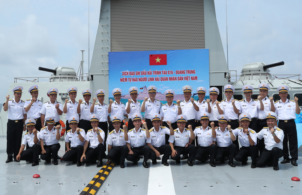 HQ Online - Trên hải trình đến Australia tham dự Lễ duyệt binh tàu quốc tế và Diễn tập hải quân đa phương (Kakadu-2026), Tàu 016-Quang Trung, Lữ đoàn 162, Vùng 4 Hải quân nhân dân Việt Nam đã vượt qua đường xích đạo. Nghi thức lễ qua đường xích đạo đã được tổ chức trên sân trực thăng của Tàu 016. Đại tá Nguyễn Minh Lành, Phó Tham mưu trưởng Vùng 4 Hải quân, Trưởng đoàn công tác chủ trì buổi lễ.